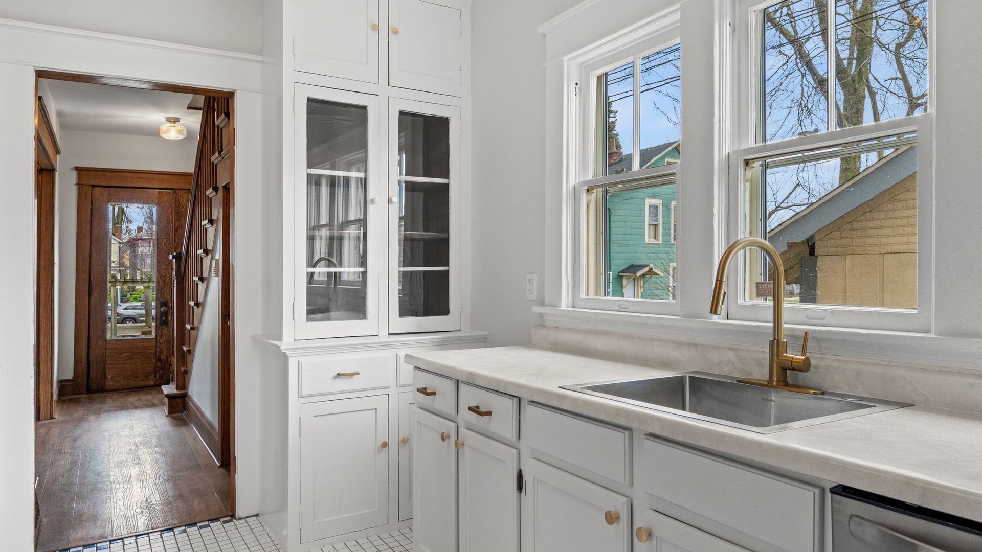 This home has a full front porch, which is an amazing spot to spend summer evenings or for morning coffee. Enter the home through beautiful historic double-doors and you'll be welcomed with an original handcrafted staircase in the formal entryway, natural woodwork, and wood floors throughout. The first floor has a living room, dining room, and a kitchen with a mudroom/pantry/utility closet off the back. The kitchen has a bright and clean workspace with stainless steel appliances, tile floor, and an original built-in cabinet. Fridge, gas stove, range hood, and dishwasher are included!