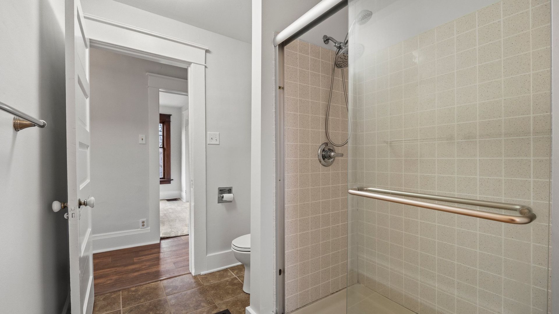 Upstairs, you have three bedrooms and a large bathroom with brand new tiled walk-in shower.